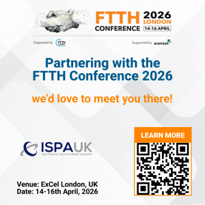 We are partnering with FTTH Conference 2026, Europe’s leading fibre summit. Taking place in ExCeL London on 15th and 16th April, we are happy to offer ISPA members a 20% discount on tickets. Book yours here and use the code FT26P-ISPA